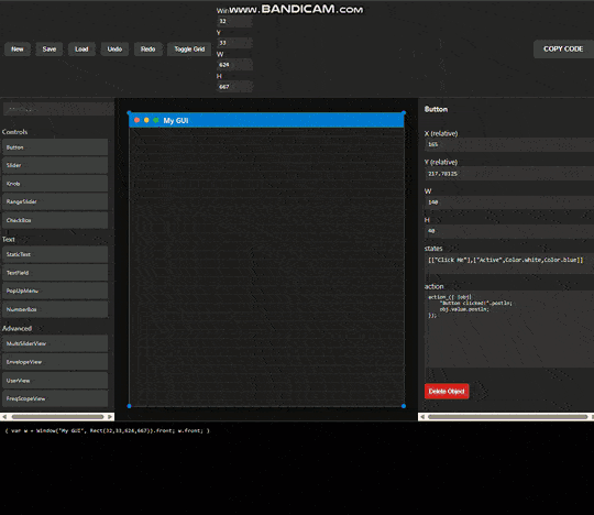 (it.class.asString++"("++winVar++","++ it.bounds.asString++");").postln;