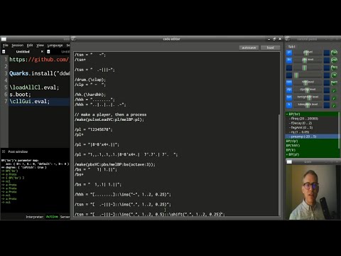 Thank you for sharing your solution. I’ve been looking around on GitHub for solutions to the live-coding syntax problem on SuperCollider without finding yours until now. It seems that lots of people have developed idiosyncratic libraries by leveraging more abstract objects. Is there a video of the system in action or a “snapshot” of a live-coded performance? I really like the fact that you were able to integrate SuperDirt as well.