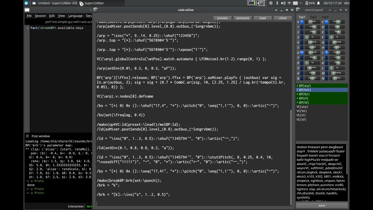 /ld = "\ins("@", 1..3, 0.5)::\shuf("1345794'", "@")::\stuttPitch(, 8, 0.25, 0.4, 10, "\vossdiff("11111")", "~", "@", "*")::\artic(">~", "@")::\artic("~~_")";