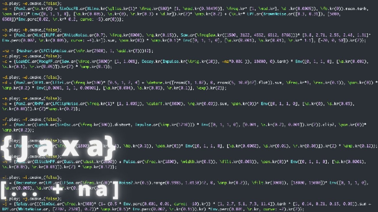 Hello! I have watched a lot of your performances already. It always leave me with a question in mind. Why are you not using Pbind, Pdef or an event-based approach to live coding? Is it just because of a personal preference? Of course, I can see that you are using a lot of patterns already, but always in the context of Tdef.