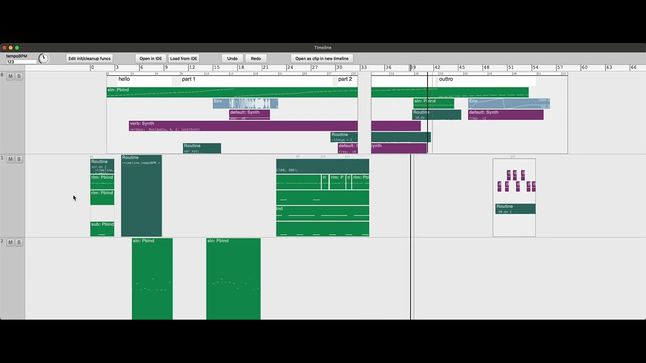 I’ve been working lately at a proof-of-concept vanilla SC timeline with GUI editing. Although I’m trying to keep my sights achievable (not trying to make the ultimate whatever, just to be of use to myself) I thought I’d put it up for general feedback. So here is a preliminary but usable attempt. Lots of rough edges and many more clip types to be made but the concept, I think, is strong. Much more information including tutorial/example workflow on the github readme.