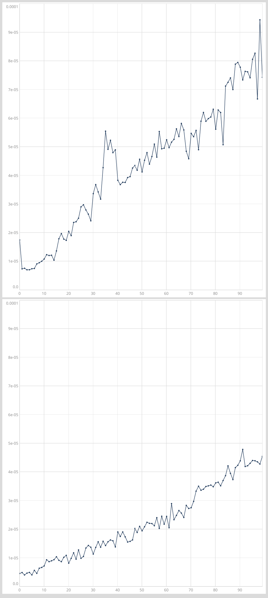 As you can see, the plot of the tested recursion inside of try scaled super-linearly and the non-nested version, when shown on the same scale, canât even be seen.