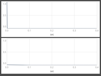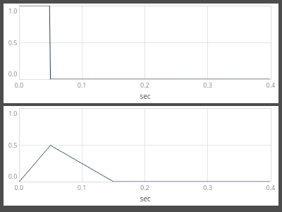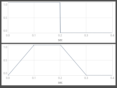 NOTE: The actual minimum duration of a segment is not zero, but one sample step for audio rate and one block for control rate. This may result in asynchronicity when in two envelopes of different number of levels, the envelope times add up to the same total duration. Similarly, when modulating times, the new time is only updated at the end of the current segment - this may lead to asynchronicity of two envelopes with modulated times.