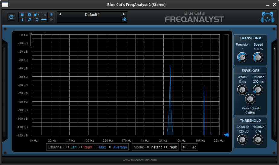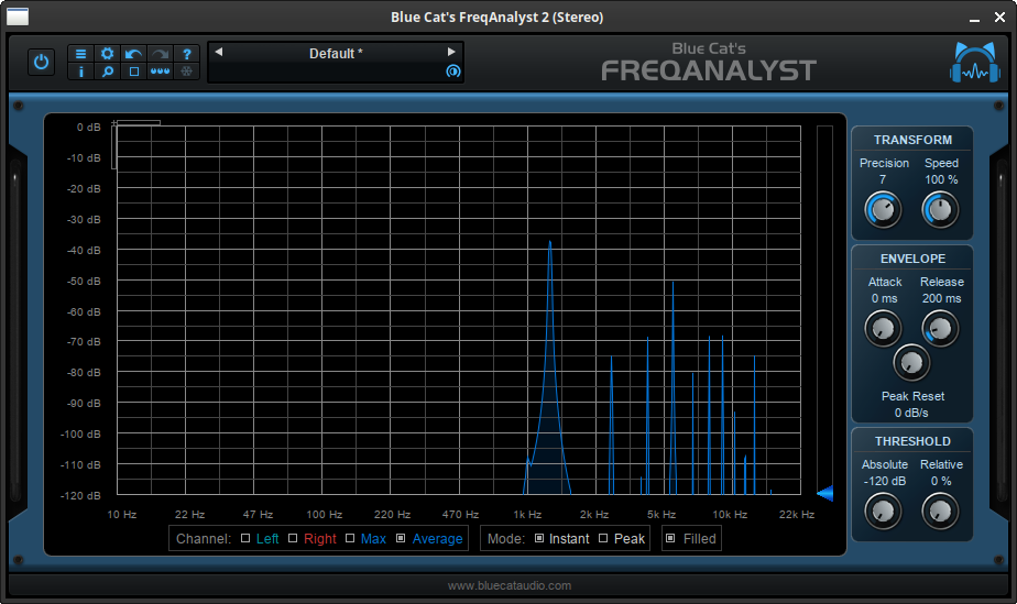 Now, this frequency was empirically found to show ideal behavior in MultiWtOsc. So I looked for another frequency where some aliasing is visible = 1305.52 Hz.